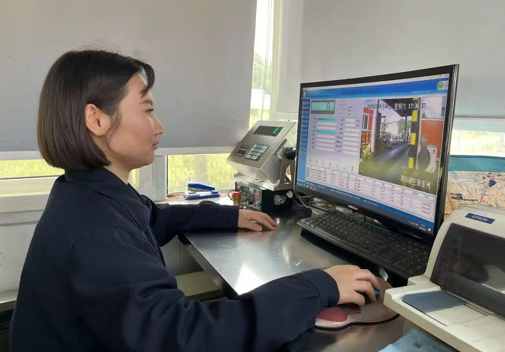 精准称重,她为煤炭运销把好“关卡”。当清晨的第一辆运煤车驶入矿区,李娟已端坐磅房操作台前。她面前的电子磅秤,是煤炭外销的“计量关口”,也是煤矿效益的“守护线”。作为司磅员,她的岗位职责不仅是记录煤炭重量,更要通过细致核查,从源头把控煤炭质量。“每一辆运煤车的派车单都不能马虎,每一组数据都不能差,差一点就是效益损失。”李娟一边说着,一边熟练地核对眼前运煤车的单据。她认真践行“三核三对”操作准则,用日复一日的精准操作,践行着司磅员保障煤炭运销畅通的职责。