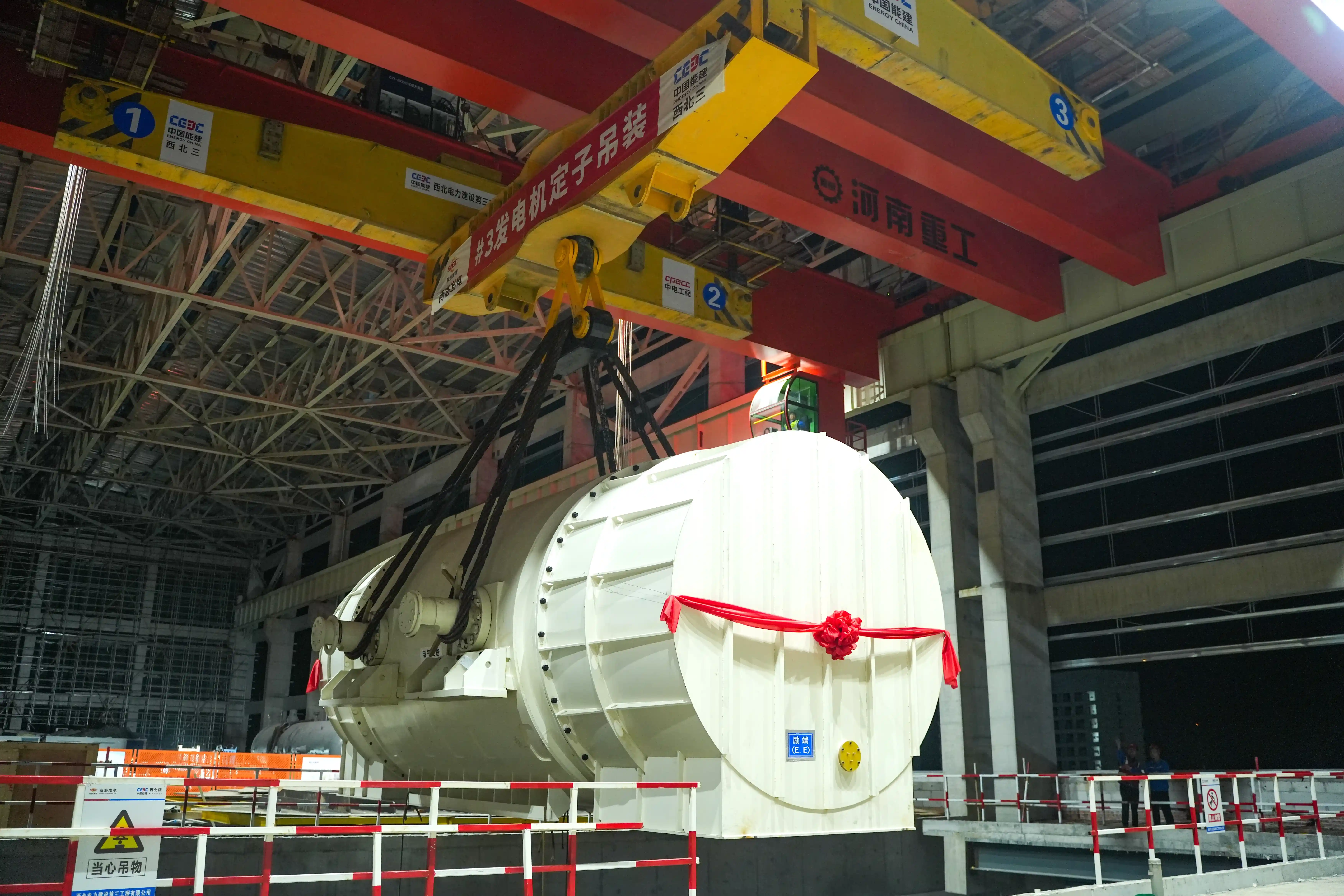 商洛发电二期项目3号机组发电机定子顺利吊装就位