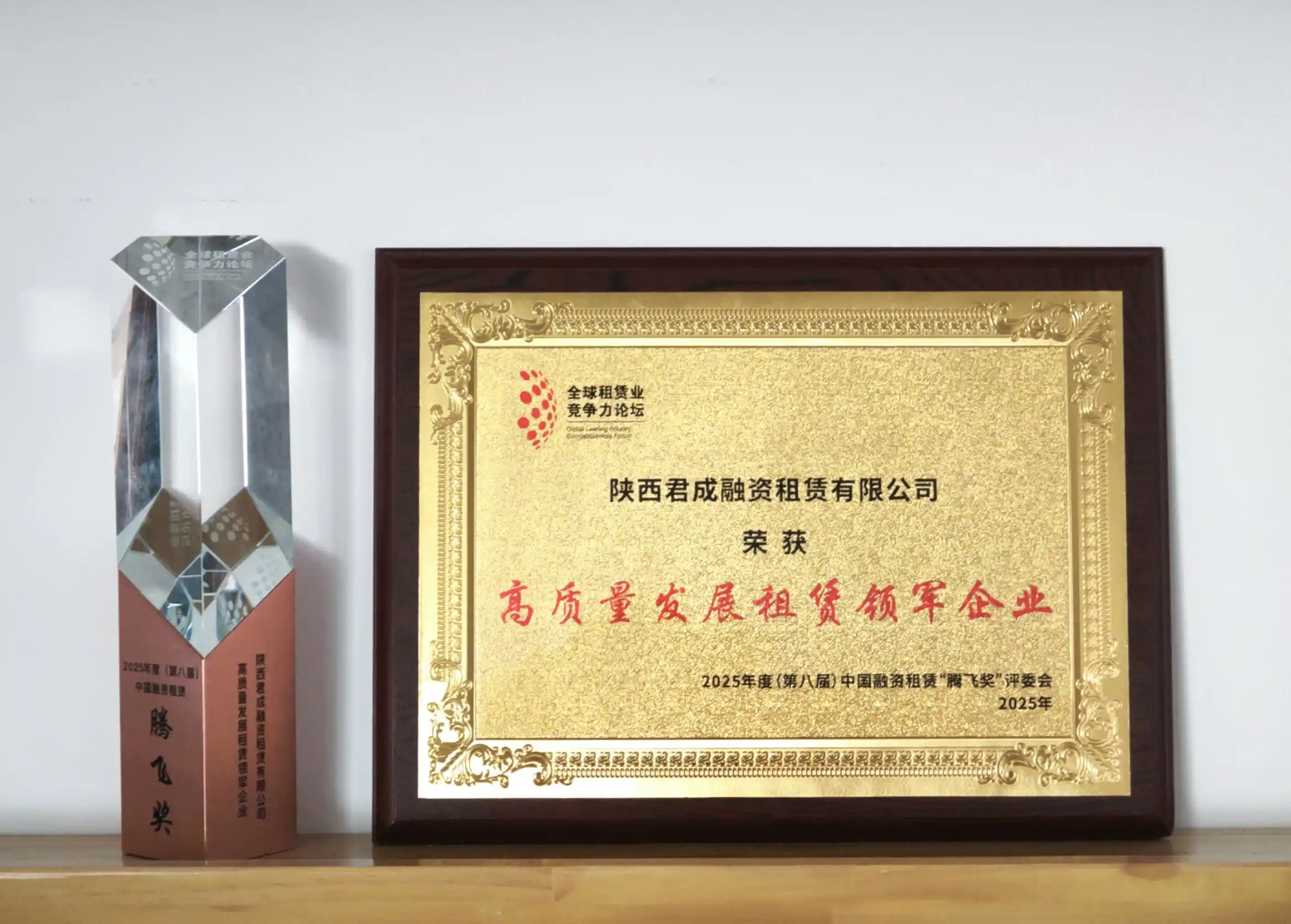 君成租赁荣获全球租赁业竞争力论坛“2025年度(第八届)中国融资租赁腾飞奖·高质量发展租赁领军企业”奖项