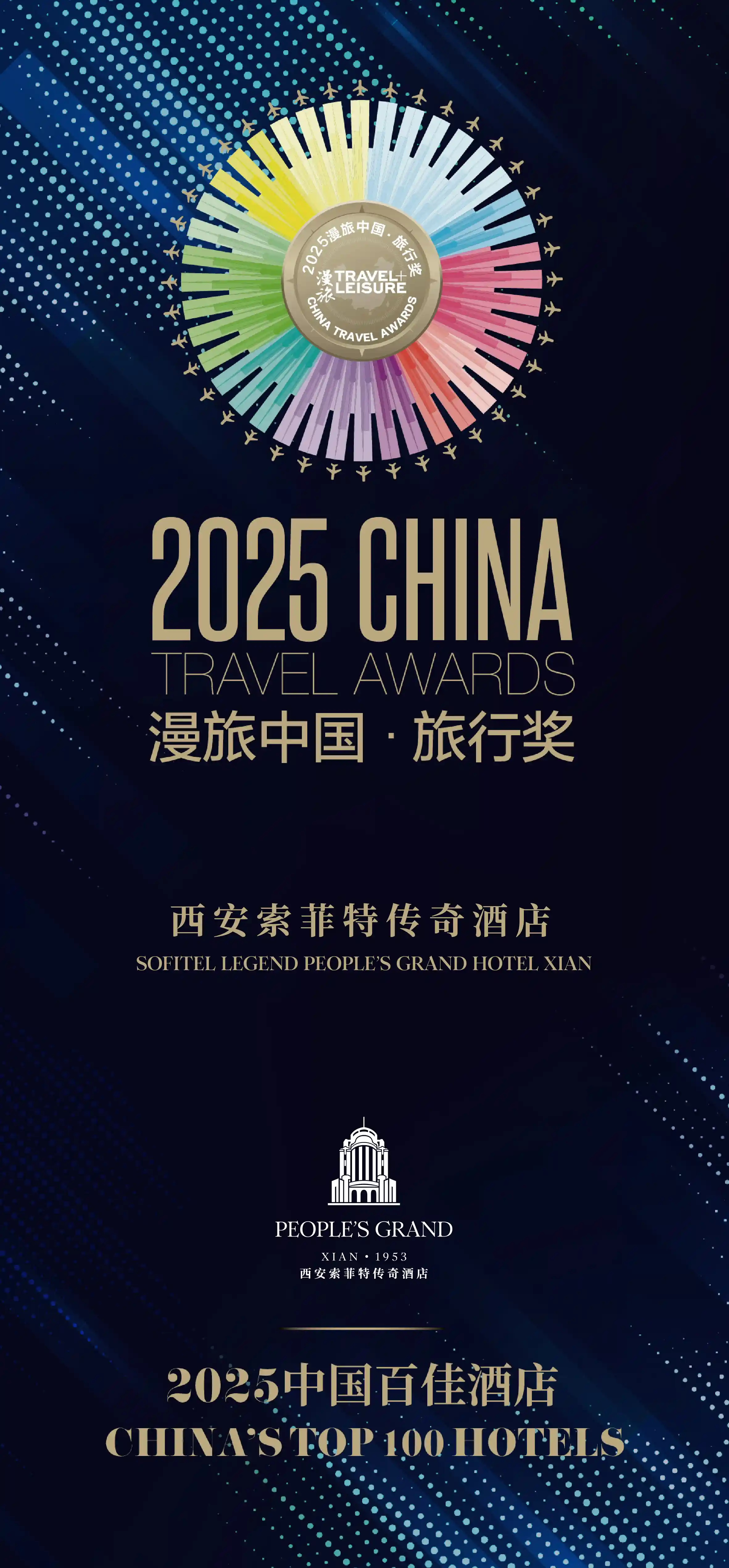 近日,由高端旅行杂志《漫旅Travel+Leisure》主办的“漫旅中国·旅行奖”2025年度中国百佳酒店榜单正式揭晓,西安人民大厦索菲特传奇酒店凭借卓越的品质与优质的服务,成功斩获“中国百佳酒店”殊荣,彰显酒店在高端酒店行业的强劲实力与良好口碑。
