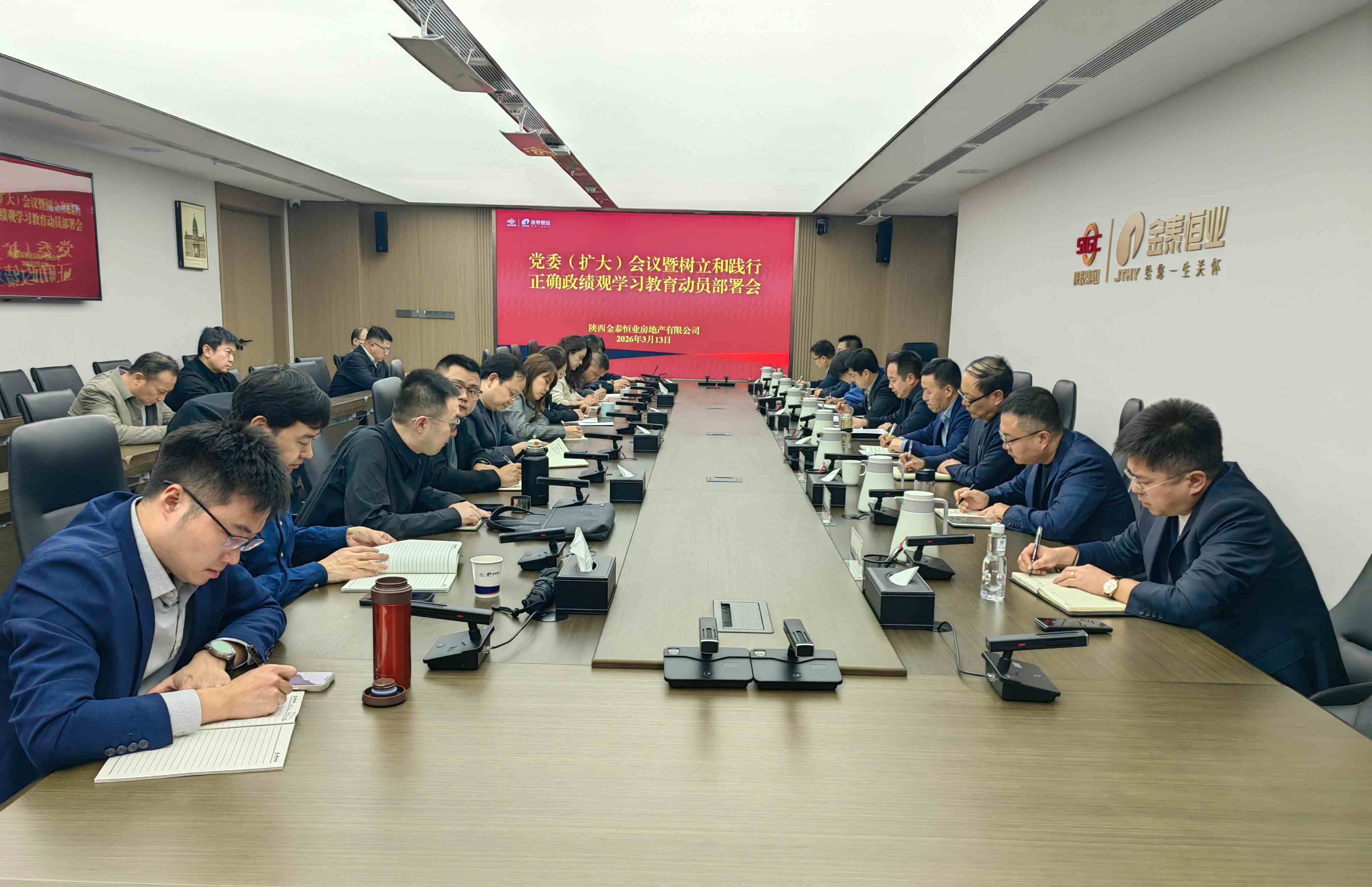 3月13日,金泰恒业召开党委扩大会议暨树立和践行正确政绩观学习教育启动部署会议,认真学习贯彻习近平总书记关于树立和践行正确政绩观学习教育的重要讲话重要指示精神,传达学习中央、省委部署和省国资委以及陕投集团党委、陕城投党委有关会议精神,审议《金泰恒业系统开展树立和践行正确政绩观学习教育工作方案》,启动部署公司系统学习教育工作。