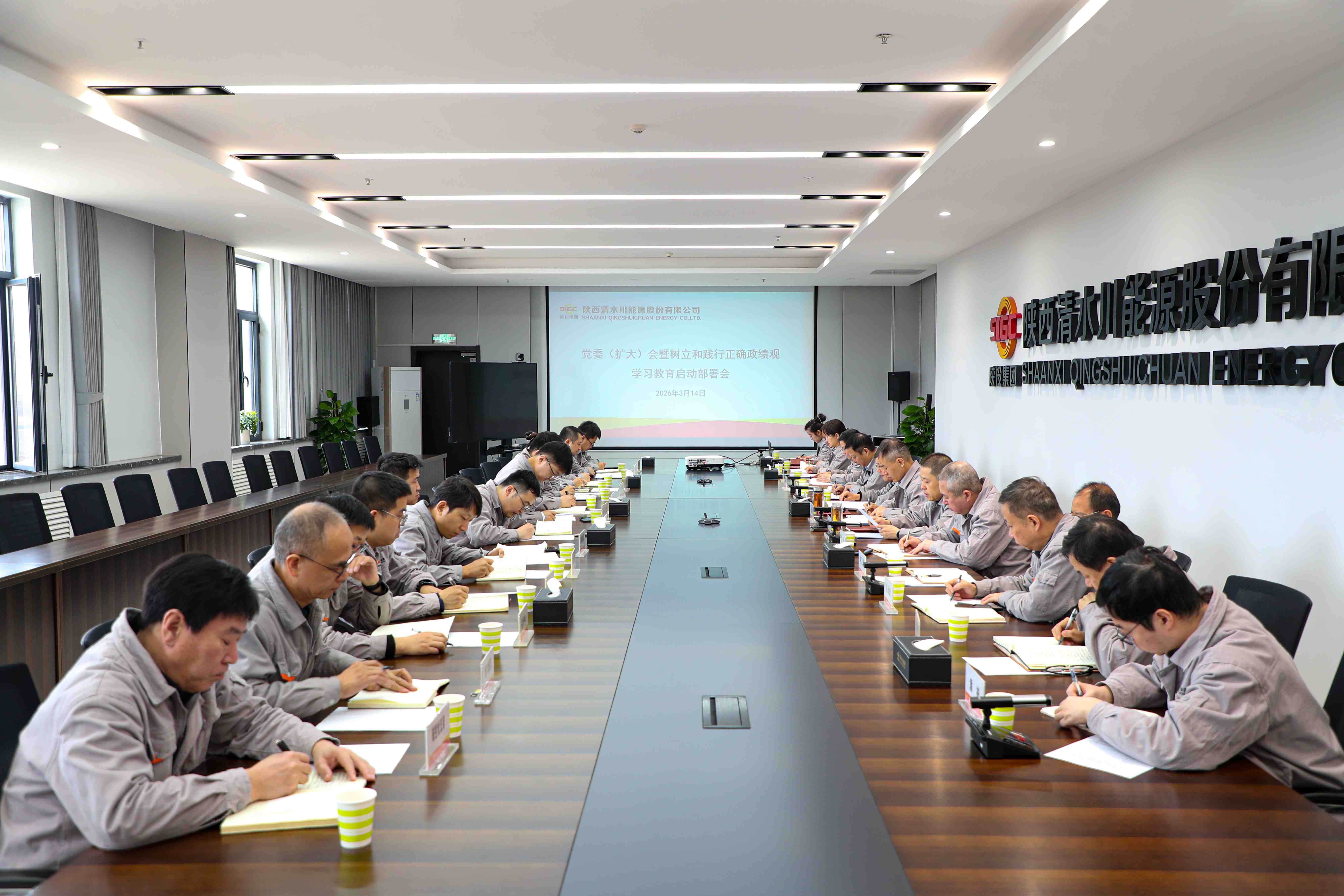 3月14日,清水川能源召开党委扩大会议暨树立和践行正确政绩观学习教育启动部署会议,认真学习贯彻习近平总书记关于树立和践行正确政绩观学习教育的重要讲话重要指示精神,传达学习中央党的建设工作领导小组会议、省委常委会会议暨省委党的建设工作领导小组会议,省国资委、集团公司、陕西能源党委有关部署会议精神,审议公司《开展树立和践行正确政绩观学习教育工作方案》,启动部署公司学习教育工作。
