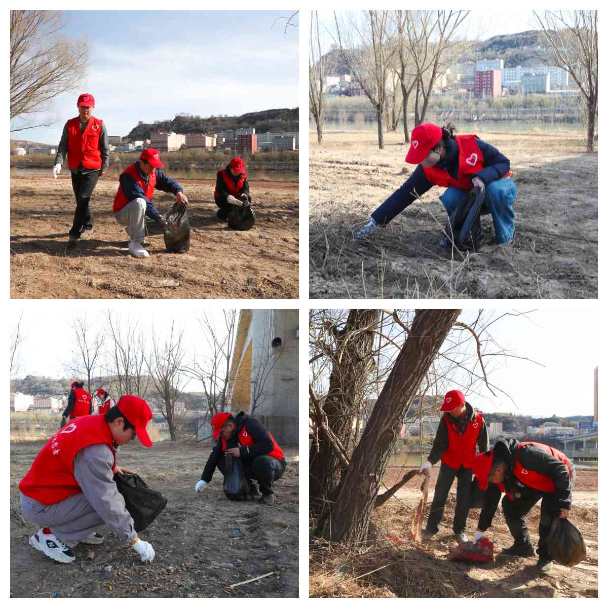 活动现场,志愿者们身穿红马甲,手持垃圾袋,三五成群地穿梭在公园步道和河滩之间。大家分工协作、俯身弯腰,仔细搜寻着角落里的烟头、塑料瓶、废弃包装袋……红色的身影在黄河岸边流动,构成一道温暖的风景线。